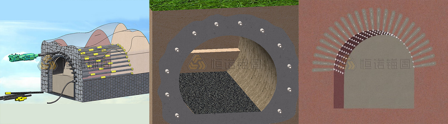 自鉆式錨桿可用于邊坡支護(hù)、基坑支護(hù)、樁基支護(hù)、隧道管棚支護(hù)及系統(tǒng)支護(hù)、輸電塔或風(fēng)塔等的基礎(chǔ)支護(hù)、舊建筑物修復(fù)等。