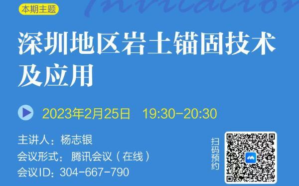 發(fā)布日期:2022-12-14 15:14巖土錨固學(xué)苑將于2022年11月19日(周六)19:30-20:30舉辦第6期,本期主題:施工工藝對(duì)基坑安全的影響,歡迎廣大巖土錨固領(lǐng)域愛(ài)好者參與交流...