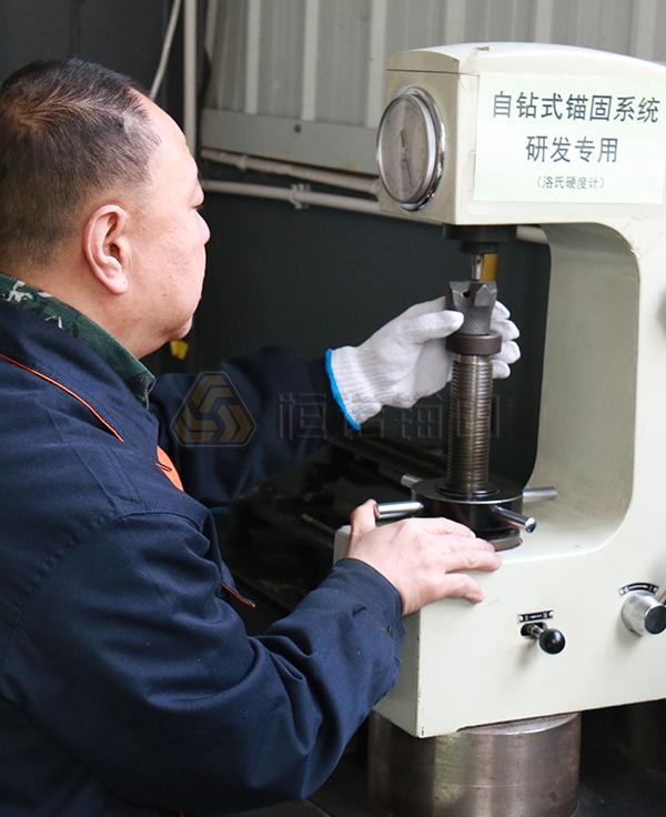 公司配置10余人的專業質檢團隊,為保證產品質量,我司特建立自鉆式中空錨固系統專用實驗室,配有40余種試驗設備和測量工具,如拉力試驗機、輪廓儀、沖擊試驗機、光譜儀、多種測量工具等,實現所有關鍵指標均可自主檢測。