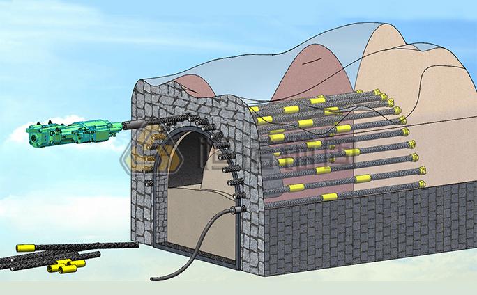 自鉆式管棚由中空錨桿體、連接套和鉆頭組成,可實現(xiàn)鉆進+注漿兩道工序一次完成。自鉆式管棚無需使用套管鉆孔,可替代常規(guī)管棚用于各種易塌孔地質(zhì),其常見規(guī)格有R51、T76、T103等。